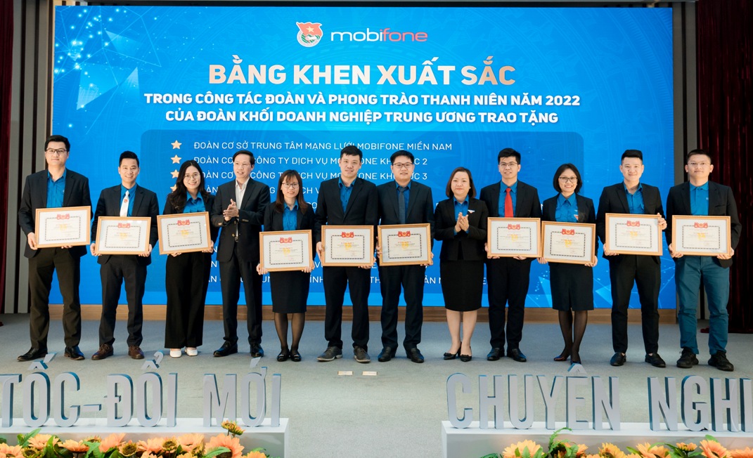 Với những thành tích toàn diện trong năm 2022, Đoàn MobiFone được BTV Đoàn Khối DNTW tặng Cờ thi đua xuất sắc công tác Đoàn và phong trào thanh niên năm 2022; 10 tập thể và 14 cá nhân các cơ sở Đoàn trực thuộc nhận Bằng khen của Đoàn Khối DNTW.
