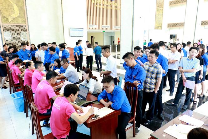 Đông đảo đoàn viên, công chức, viên chức Kiểm toán viên của các đơn vị trực thuộc KTNN có trụ sở tại Hà Nội tham gia hiến máu.