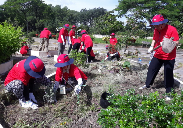 Các tình nguyện viên tỉnh Chungcheongnam tham gia trồng cây xanh |