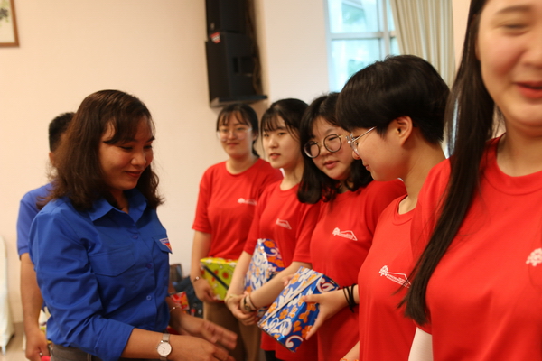Phó Bí thư Tỉnh đoàn Long An Lê Thị Cẩm Tú tặng quà cho thanh, thiếu niên tỉnh Chungcheongnam |