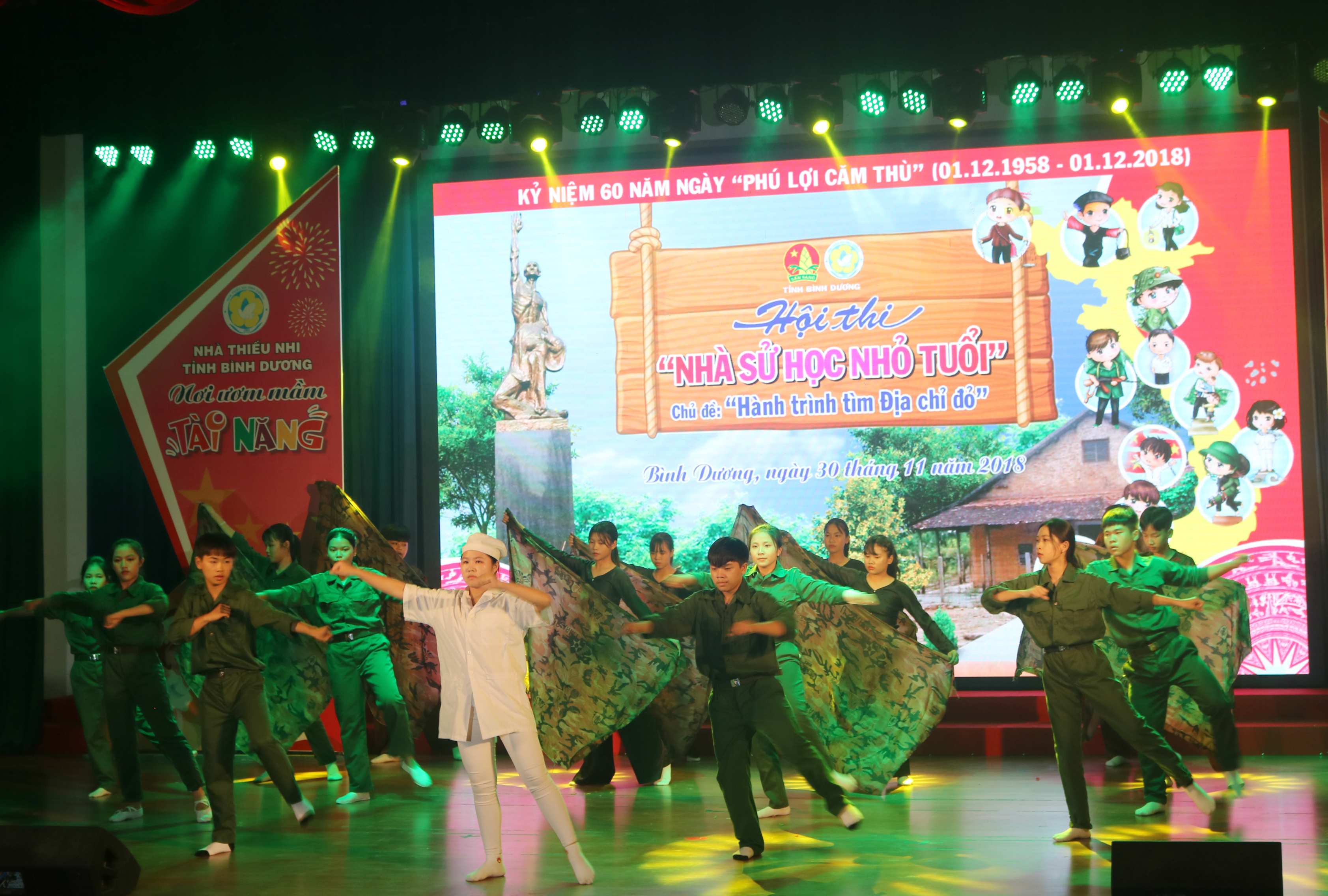 Hội thi đã thu hút gần 400 thí sinh là đội viên, thiếu niên, nhi đồng của 9 huyện, thị, thành phố trong tỉnh tham gia. Các nội dung thi bao gồm: trắc nghiệm kiến thức, viết cảm nhận về Nhà tù Phú Lợi (thông qua sự kiện lịch sử: vụ thảm sát, đầu độc tù chính trị tại nhà tù Phú Lợi, tỉnh Bình Dương vào ngày 01/12/1958), Nhà sử học nhỏ tuổi theo hình thức rung chuông vàng và sử ca học đường với các hoạt cảnh về nhân vật lịch sử chủ đề: “Sáng mãi tấm gương người anh hùng”.