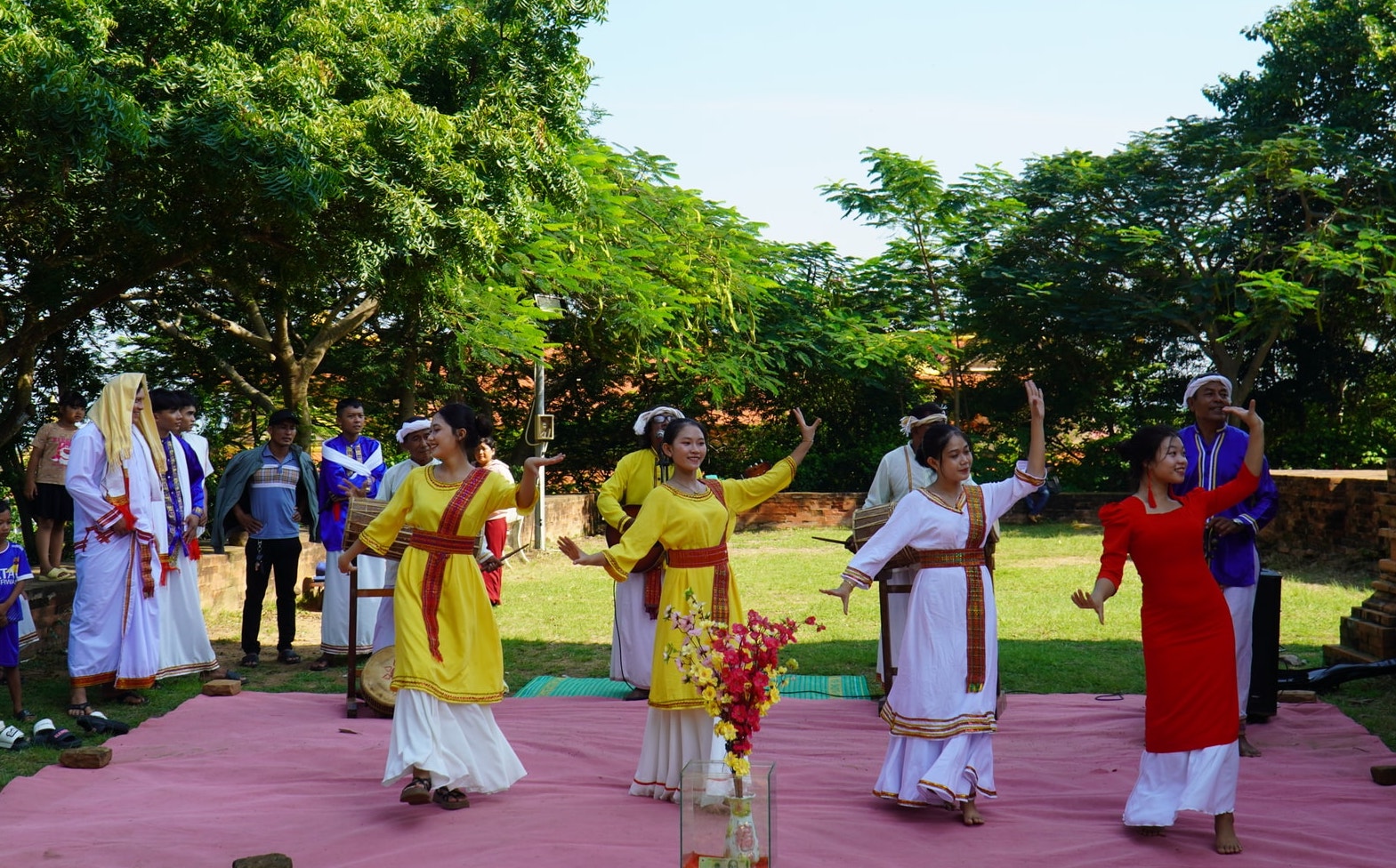 Những cô gái trẻ biểu diễn nghệ thuật truyền thống chào mừng lễ hội và trình diễn nghệ thuật đặc sắc của đồng bào Chăm