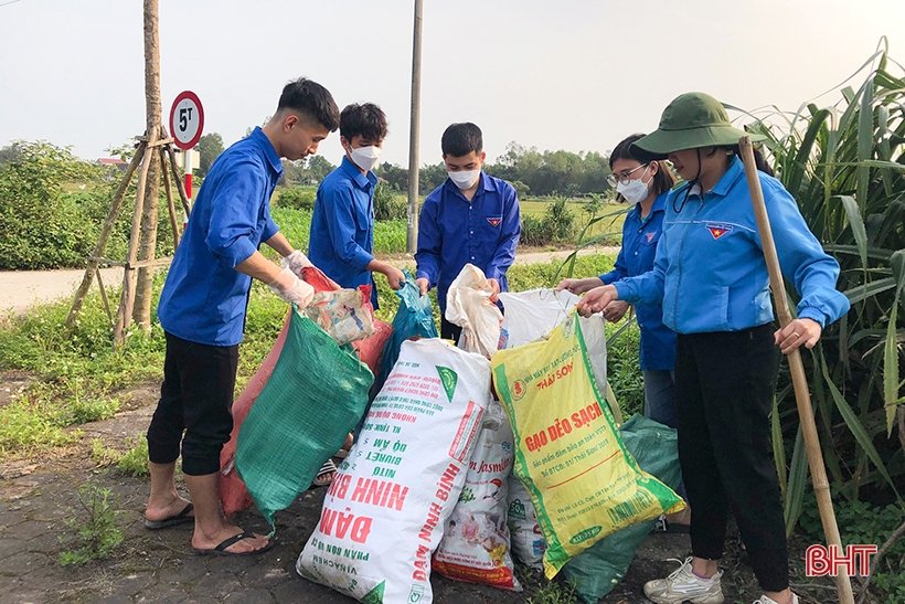 Hương Khê ra mắt 1 tuyến đường “sáng - xanh - sạch - đẹp”; phát quang 1 km hành lang đường giao thông, thu gom và xử lý rác thải, dọn dẹp tuyến đường thanh niên nông thôn.