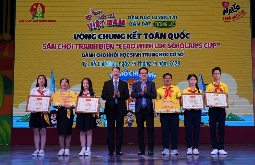 Tối 11/11, tại TP HCM, Hội đồng Đội Trung ương phối hợp với Công ty cổ phần sữa Quốc tế IDP - thương hiệu Lof Malto tổ chức vòng Chung kết toàn quốc, tổng kết và trao giải thưởng sân chơi tranh biện “Lead with Lof scholar’s cup” năm 2023 với sự tham gia của 04 đội thi đến từ các tỉnh, thành phố Hải Phòng, Lâm Đồng, Cần Thơ và Thành phố Hồ Chí Minh.