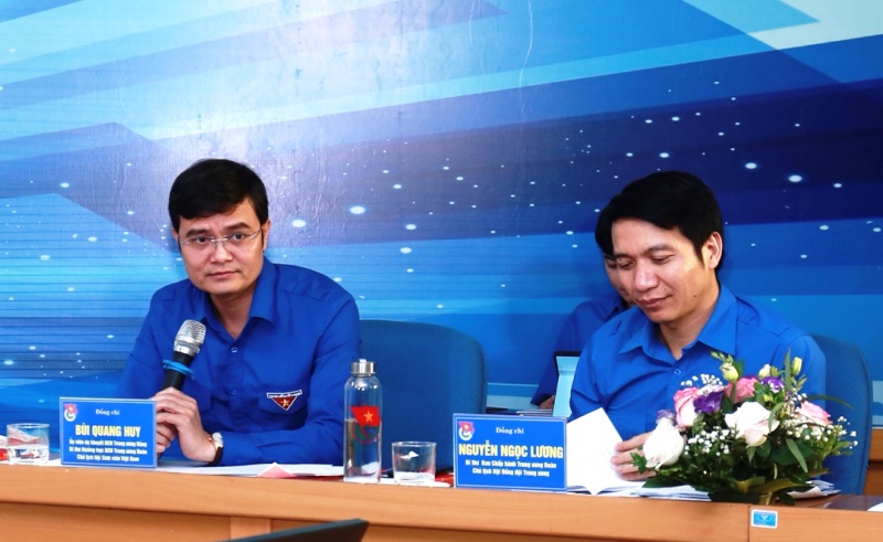 Đồng chí Bùi Quang Huy - Ủy viên dự khuyết BCH Trung ương Đảng, Bí thư thường trực BCH Trung ương Đoàn, Chủ tịch Hội SVVN và đồng chí Nguyễn Ngọc Lương - Bí thư Trung ương Đoàn, Chủ tịch Hội đồng Đội Trung ương cùng tham gia buổi đối thoại và trao đổi, giải đáp thắc mắc của các bạn ĐVTN