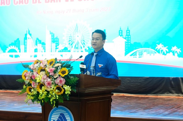 Đồng chí Nguyễn Mạnh Dũng, Ủy viên BTV Trung ương Đoàn, Thành uỷ viên, Bí thư Thành Đoàn Đà Nẵng phát biểu đề dẫn