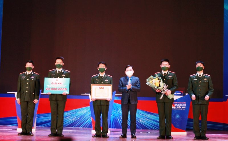 Bí thư thứ nhất BCH Trung ương Đoàn Nguyễn Anh Tuấn trao giải Nhì cho đội tuyển Ban Thanh niên Quân đội