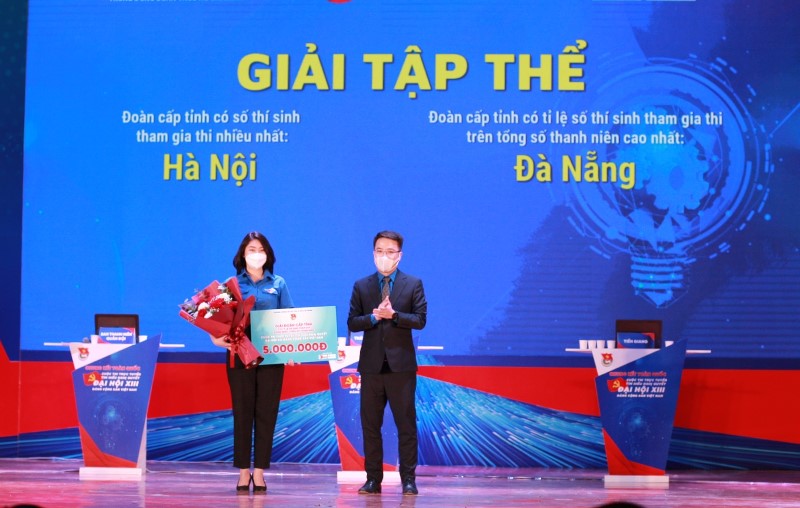 Đồng chí Nguyễn Tường Lâm - Bí thư Trung ương Đoàn trao giải cho các tập thể có số lượng thí sinh tham gia nhiều nhất