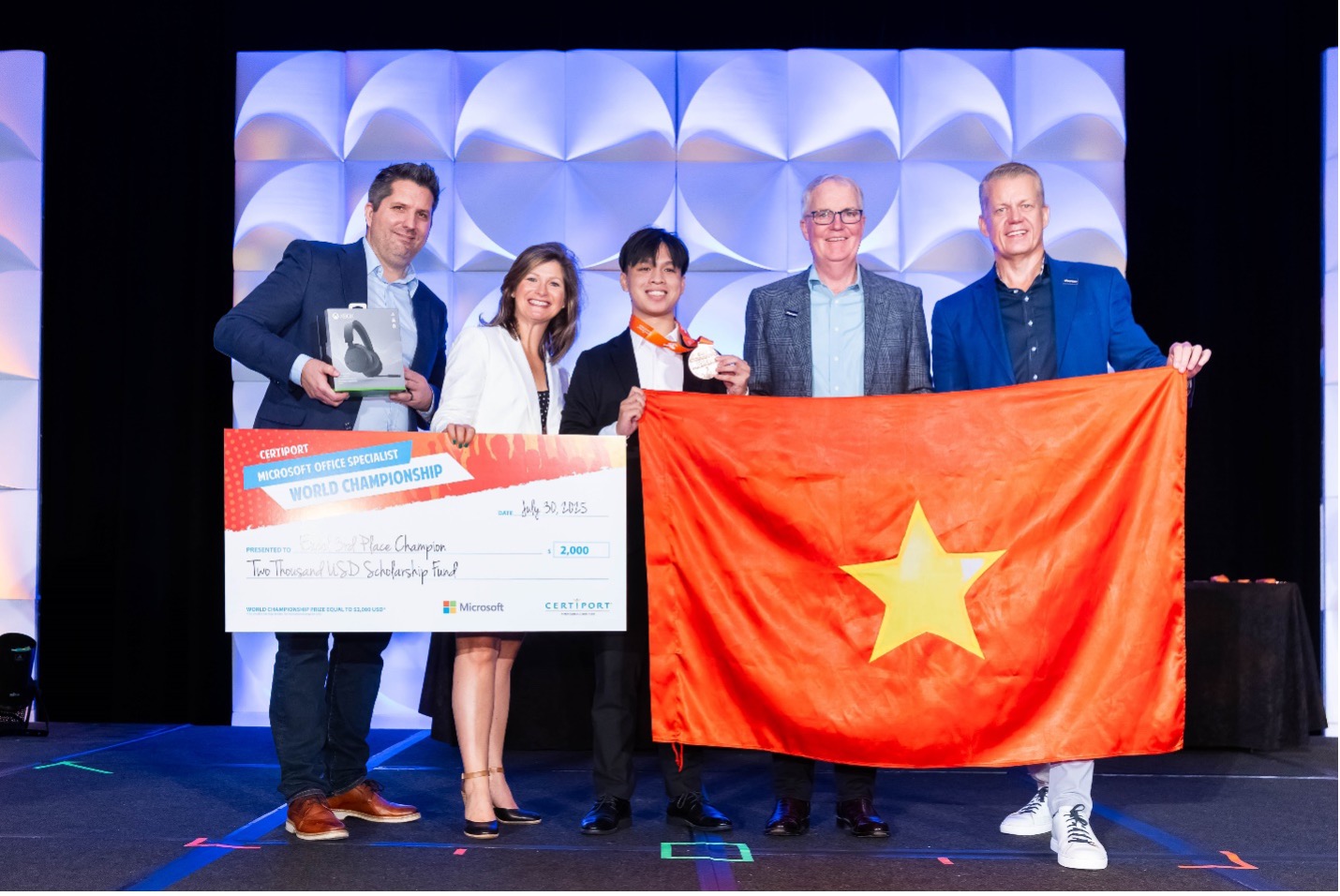 Thí sinh mang về tấm huy chương Vàng danh giá cho nước nhà là Đỗ Hải Long - sinh viên Học viện Công nghệ Bưu chính Viễn thông, nội dung MOS Word 365 Apps. Thí sinh xuất sắc mang về tấm huy chương Đồng cho đoàn Việt Nam là Lương Sơn Tùng – sinh viên trường Đại học Ngoại thương, nội dung MOS Excel 365 Apps.