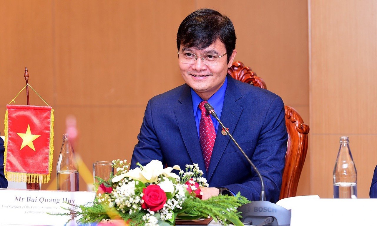 Đồng chí Bùi Quang Huy, Ủy viên dự khuyết T.Ư Đảng, Bí thư thứ nhất T.Ư Đoàn TNCS Hồ Chí Minh, Chủ nhiệm Ủy ban Quốc gia về thanh niên Việt Nam trao đổi tại buổi hội đàm