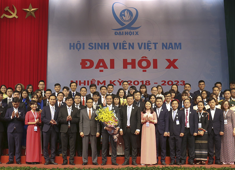 Phó Thủ tướng Vũ Đức Đam và Bí thư thứ nhất Trung ương Đoàn Lê Quốc Phong tặng hoa Ban Chấp hành Trung ương Hội Sinh viên Việt Nam khoá X, nhiệm kỳ 2018 - 2023 ra mắt Đại hội |