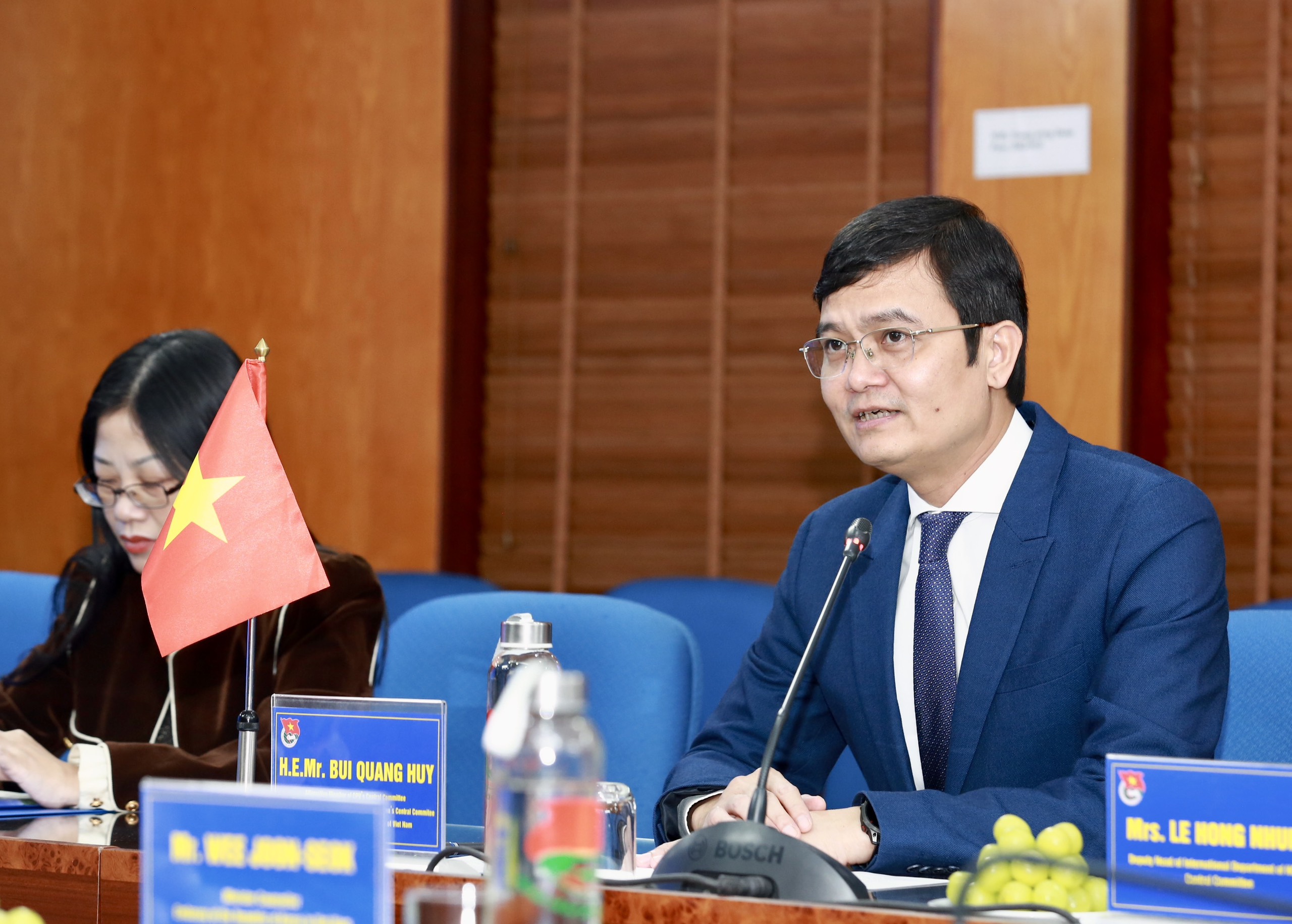 Cũng tại buổi làm việc, đồng chí Bùi Quang Huy trân trọng cảm ơn Đại sứ cùng đoàn công tác đã dành thời gian đến thăm Trung ương Đoàn TNCS Hồ Chí Minh, Ủy ban Quốc gia về Thanh niên Việt Nam. Chúng tôi luôn sẵn sàng thúc đẩy và mở rộng hợp tác giữa thanh niên hai nước. Chúc quan hệ hợp tác giữa hai nước, trong đó có hợp tác trên lĩnh vực thanh niên, thiếu nhi ngày càng phát triển tốt đẹp. Chúc tình đoàn kết, hữu nghị giữa nhân dân hai nước Việt Nam – Hàn Quốc ngày càng bền chặt.