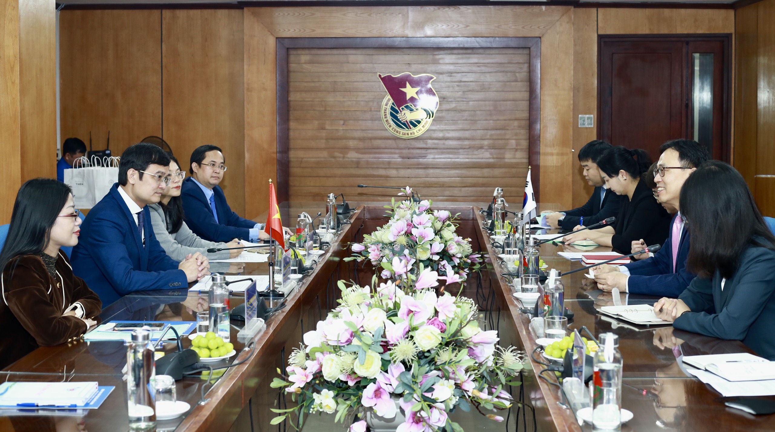 Chào mừng Ngài Choi Youngsam, Đại sứ đặc mệnh toàn quyền Hàn Quốc tại Việt Nam cùng đoàn công tác đã dành thời gian tới thăm và làm việc với Trung ương Đoàn TNCS Hồ Chí Minh, đồng chí Bùi Quang Huy vui mừng được biết Ngài tân Đại sứ vừa được bổ nhiệm từ tháng 7/2023 và chúc Đại sứ có một nhiệm kỳ công tác thành công tại Việt Nam.