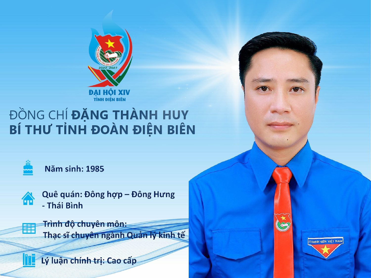 Đồng chí Đặng Thành Huy - Bí thư Tỉnh Đoàn Điện Biên khóa XIII, nhiệm kỳ 2017 - 2022, được tín nhiệm bầu làm Bí thư Tỉnh Đoàn khóa XIV, nhiệm kỳ 2022 – 2027. Đồng chí Mùa Chiến Thắng, Phó Bí thư Tỉnh Đoàn khóa XIII cũng được tín nhiệm bầu làm Phó Bí thư khóa XIV, nhiệm kỳ 2022-2027.