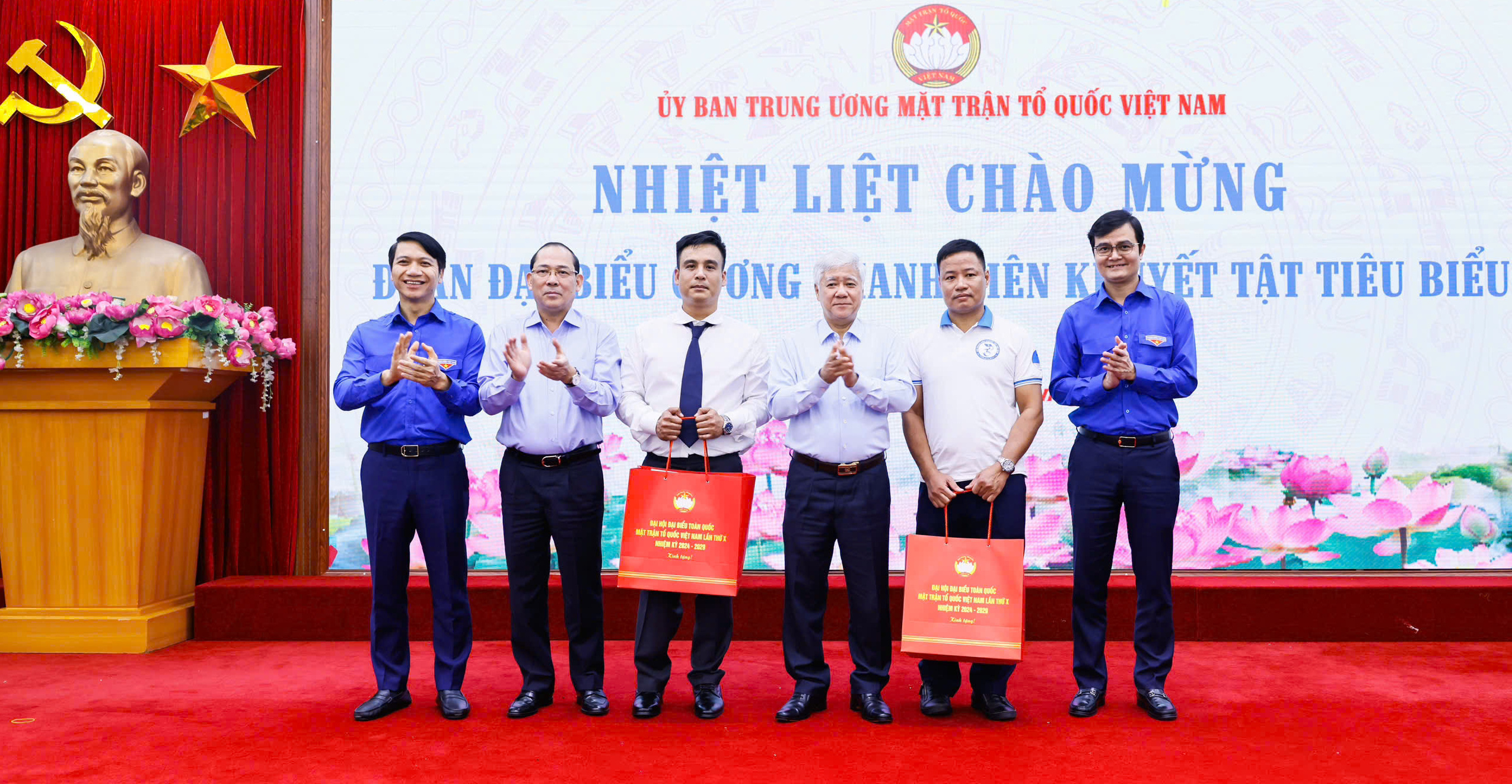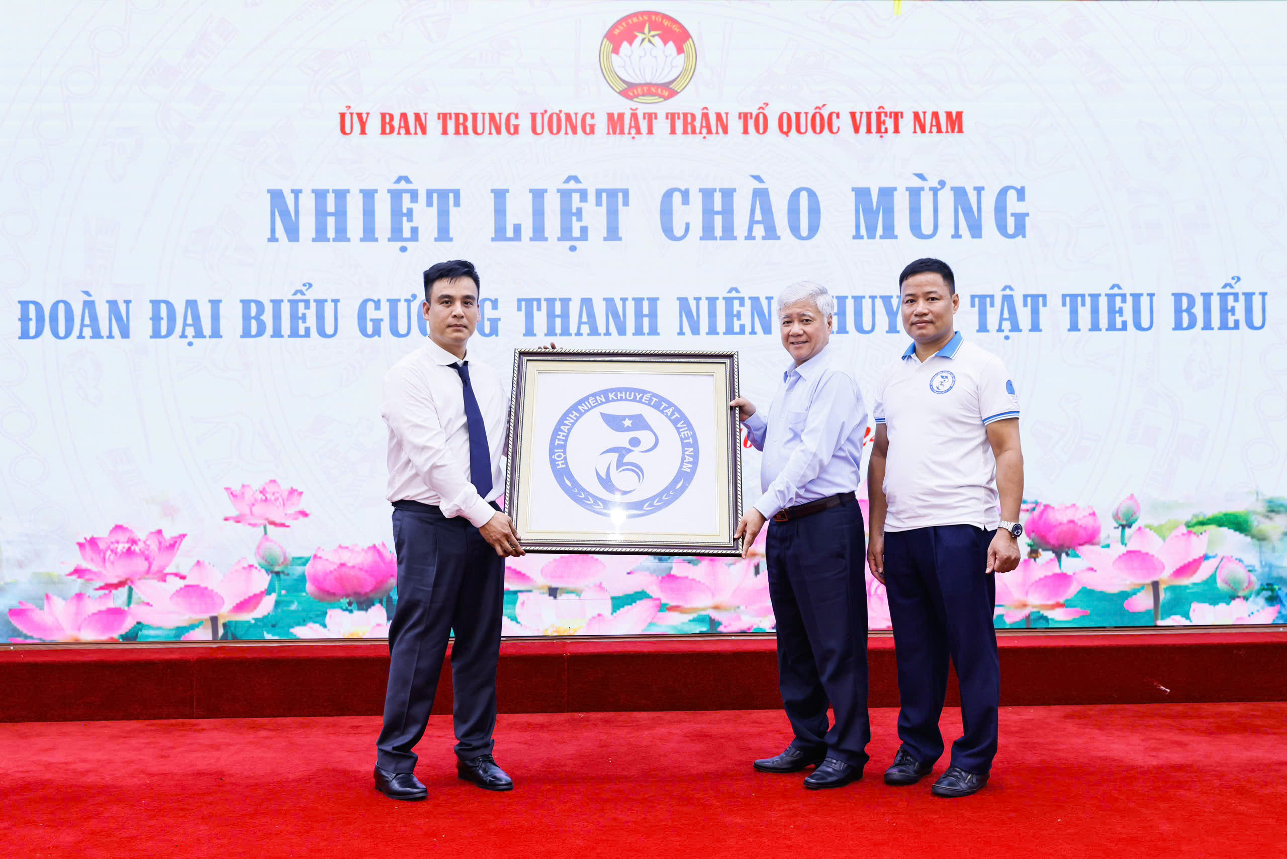 Anh Phạm Văn Thành, Chủ tịch Hội Thanh niên khuyết tật Việt Nam khóa I tặng quà Đại hội cho đồng chí Đỗ Văn Chiến, Ủy viên Bộ Chính trị, Bí thư Trung ương Đảng, Bí thư Đảng đoàn Mặt trận Tổ quốc Việt Nam, Chủ tịch Ủy ban Trung ương Mặt trận Tổ quốc Việt Nam