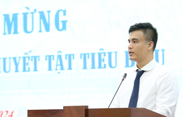 Anh Phạm Văn Thành, Chủ tịch Hội Thanh niên khuyết tật Việt Nam khóa I báo cáo tóm tắt kết quả vận động thành lập, phương hướng hoạt động của Hội Thanh niên khuyết tật Việt Nam giai đoạn 2024 - 2029 tại buổi gặp mặt