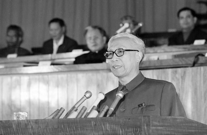 Đồng chí Lê Đức Thọ, Ủy viên Bộ Chính trị trình bày Báo cáo của Ban chấp hành Trung ương về công tác xây dựng Đảng và sửa đổi Điều lệ Đảng, tại Đại hội Đảng toàn quốc lần thứ IV (12/1976). (Ảnh: TTXVN)