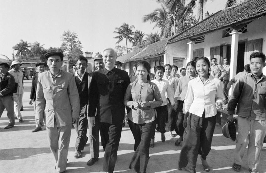 Cuối tháng 3/1975, đồng chí Lê Đức Thọ từ miền Bắc vào miền Nam cùng các đồng chí Phạm Hùng, Đại tướng Văn Tiến Dũng thay mặt Bộ Chính trị, trực tiếp chỉ đạo chiến dịch giải phóng Sài Gòn. (Ảnh: TTXVN)
