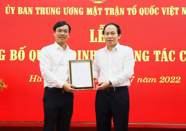 Sáng 27/7, tại Hà Nội, Đảng đoàn, Ban Thường trực UBTƯ MTTQ Việt Nam tổ chức Lễ công bố quyết định về công tác cán bộ.