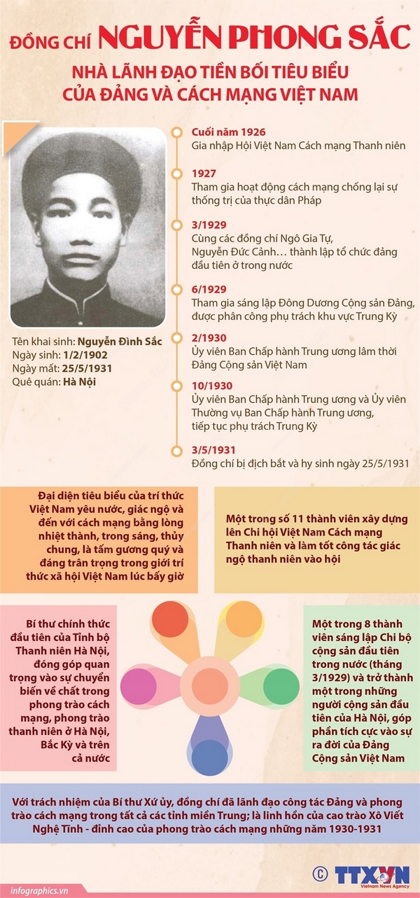 Thuộc lớp chiến sỹ cộng sản từ thời kỳ xây dựng Đảng, là một trong những thành viên đầu tiên của Chi bộ Cộng sản Bắc Kỳ, Ủy viên Ban Chấp hành Trung ương của Đảng, Bí thư Xứ ủy Trung Kỳ, đồng chí Nguyễn Phong Sắc đã có những cống hiến to lớn đối với sự ra đời và phát triển trong thời kỳ đầu hết sức khó khăn, gian khổ của Đảng Cộng sản Việt Nam.