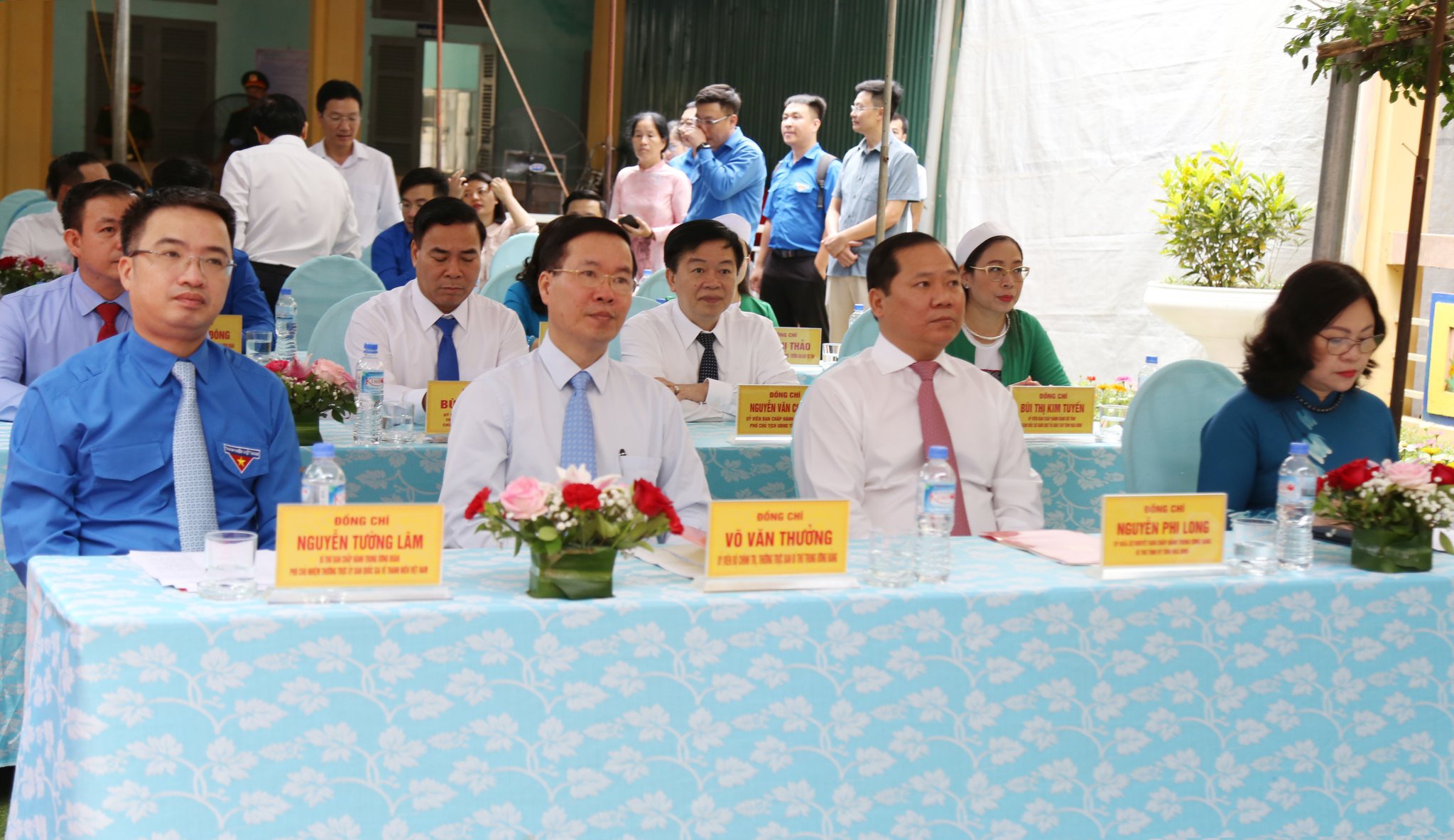 Các đồng chí: Võ Văn Thưởng, Ủy viên Bộ Chính trị, Thường trực Ban Bí thư T.Ư Đảng; Nguyễn Phi Long, Ủy viên dự khuyết BCH T.Ư Đảng, Bí thư Tỉnh ủy Hòa Bình đến dự và chúc mừng lễ khai giảng của trường Phổ thông Dân tộc bán trú TH&THCS Thung Nai (Cao Phong).