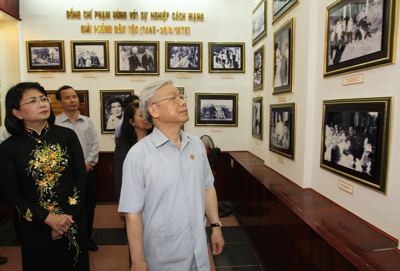 Tổng Bí thư Nguyễn Phú Trọng thăm Khu lưu niệm đồng chí Phạm Hùng ở xã Long Phước, huyện Long Hồ, tỉnh Vĩnh Long_Ảnh: TTXVN