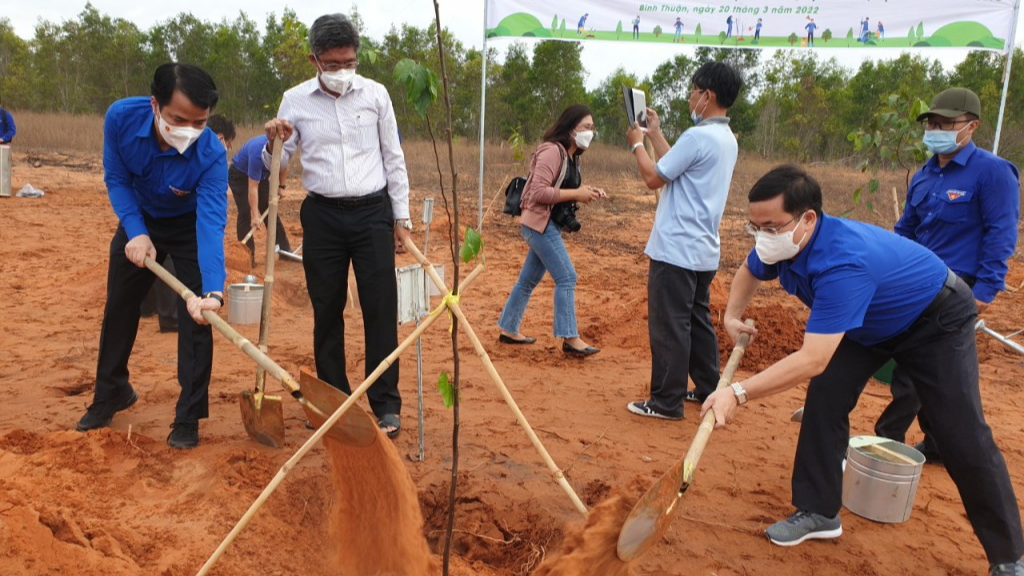 Đồng chí Ngô Văn Cương - Bí thư Trung ương Đoàn cùng các đại biểu tham gia trồng cây xanh tại Bình Thuận