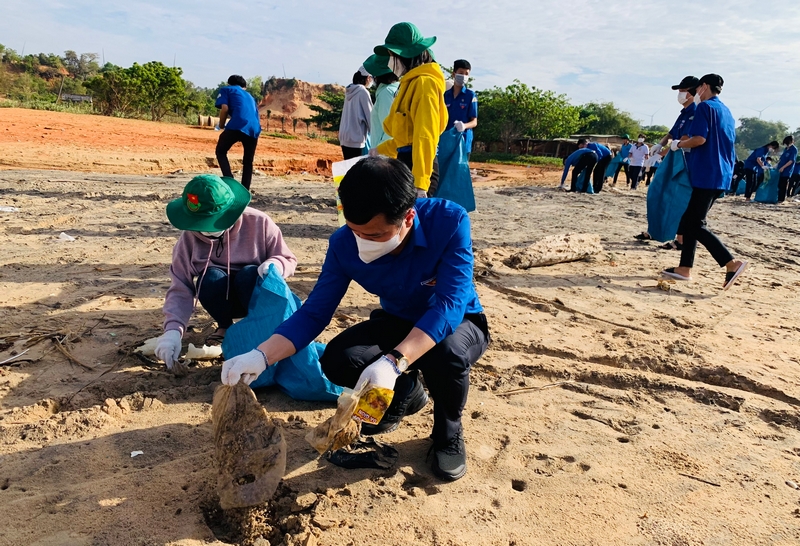 Bí thư Trung ương Đoàn Ngô Văn Cương cùng tham gia làm sạch bờ biển với ĐVTN