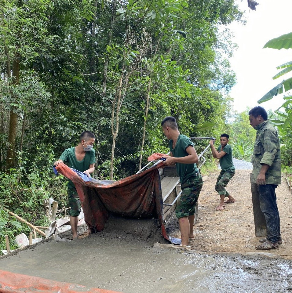 Đoàn thanh niên BCH Quân sự tỉnh phối hợp với đoàn viên thanh niên địa phương xây dựng đường bê tông tại xã Điền Mỹ, Hương Khê