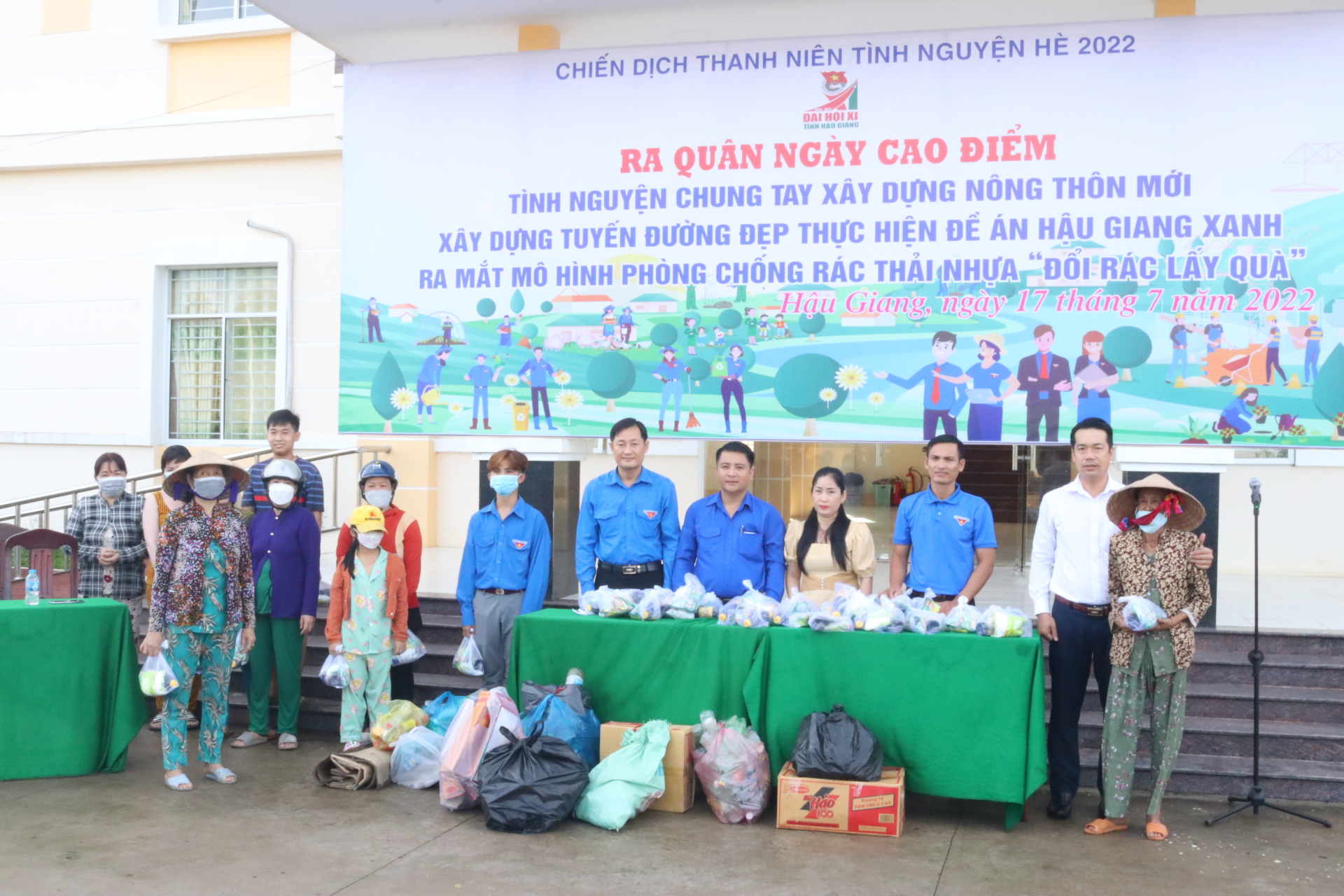 Hậu Giang: Sáng 17/7 tại UBND xã Phú Hữu, huyện Châu Thành, Ban Thường vụ Tỉnh đoàn tổ chức Lễ ra quân Ngày cao điểm tình nguyện chung tay xây dựng nông thôn mới điểm cấp tỉnh năm 2022, đồng thời ra quân xây dựng tuyến đường đẹp thực hiện Đề án Hậu Giang xanh và ra mắt mô hình phòng chống rác thải nhựa - đổi rác lấy quà.