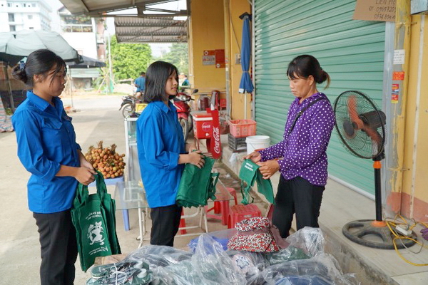 Đoàn viên thanh niên đã tham gia phát túi thân thiện với môi trường