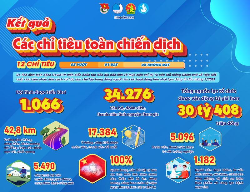 Dù khó khăn, nhưng với tinh thần quyết tâm cao chúng ta đã xác lập 12 chỉ tiêu của chiến dịch để cùng nhau thi đua thực hiện trong toàn tỉnh, đòi hỏi sự sáng tạo, quyết tâm và nỗ lực cao của các cấp bộ Đoàn. Qua đó đã có 06/12 chỉ tiêu đạt và vượt.