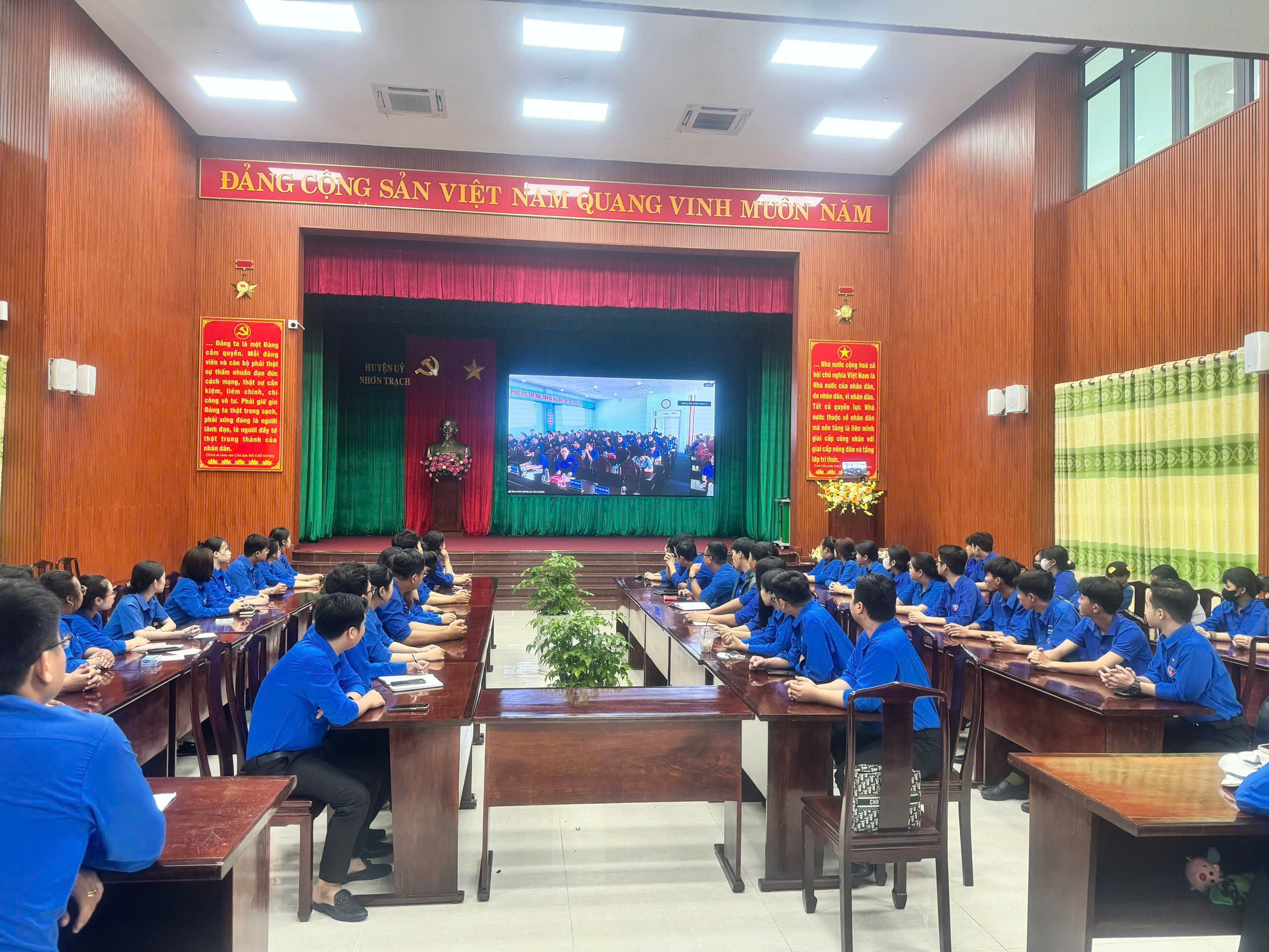 Đoàn viên thanh niên huyện Nhơn Trạch tham dự tại điểm cầu trực tuyến