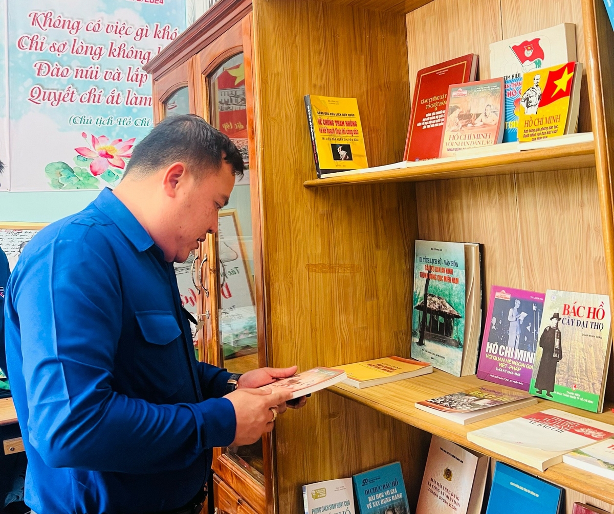 Đồng chí Nguyễn Hiếu Trung - Phó Bí thư Tỉnh đoàn tham quan Mô hình Không gian văn hoá Hồ Chí Minh, xã Gia Canh, huyện Định Quán