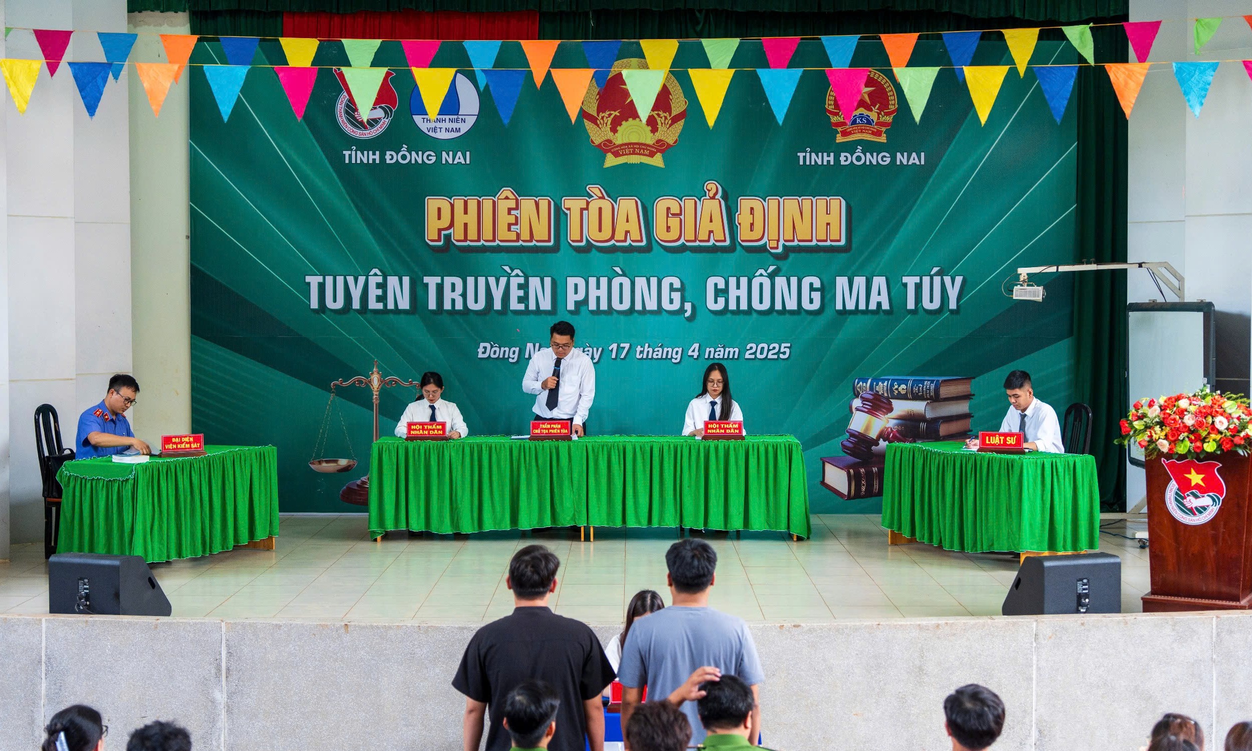 Phiên tòa giả định tái hiện một vụ án ma túy đã mang đến cho học sinh trải nghiệm chân thực như đang chứng kiến một phiên xử thực tế tại tòa án. Thông qua diễn biến vụ án, các em được hiểu rõ quy trình tố tụng, các hành vi vi phạm pháp luật và hậu quả nghiêm trọng của tệ nạn ma túy. Hoạt động này góp phần nâng cao nhận thức pháp luật, từ đó giúp học sinh biết cách tự bảo vệ bản thân và lan tỏa ý thức sống trách nhiệm vì cộng đồng.