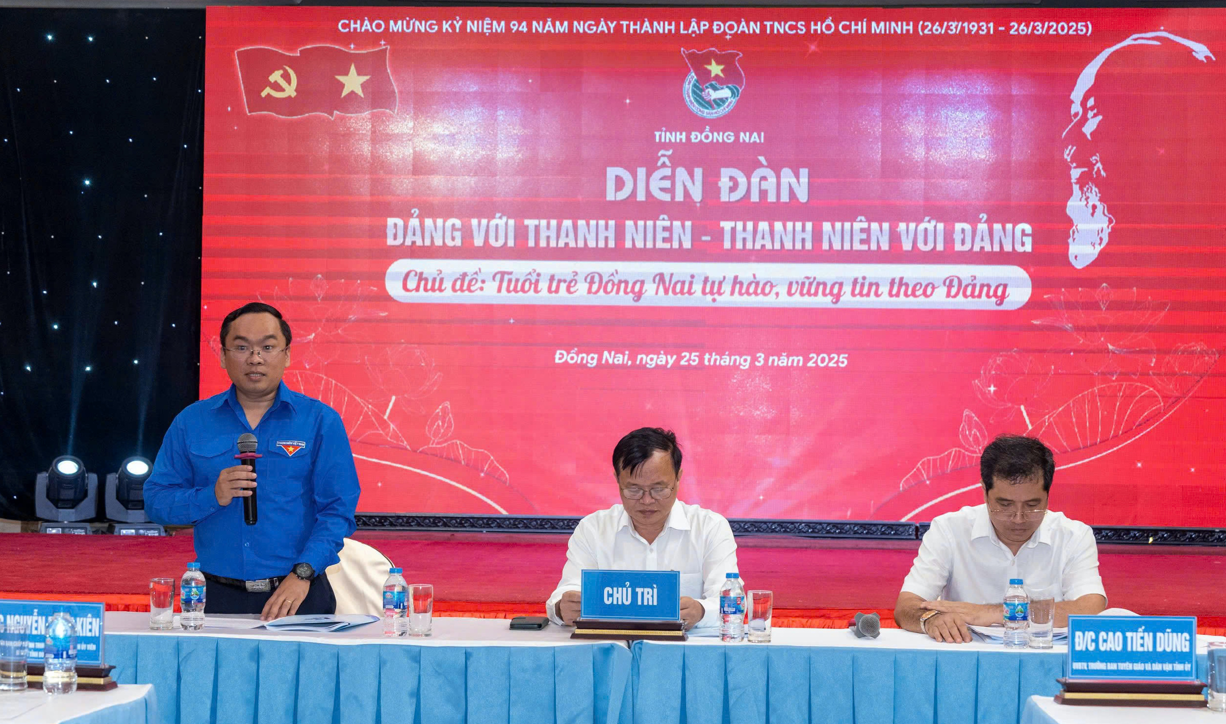 Đồng chí Nguyễn Minh Kiên, Ủy viên Ban Chấp hành Trung ương Đoàn, Tỉnh ủy viên, Bí thư Tỉnh đoàn Đồng Nai chủ trì diễn đàn trả lời các câu hỏi của đảng viên trẻ
