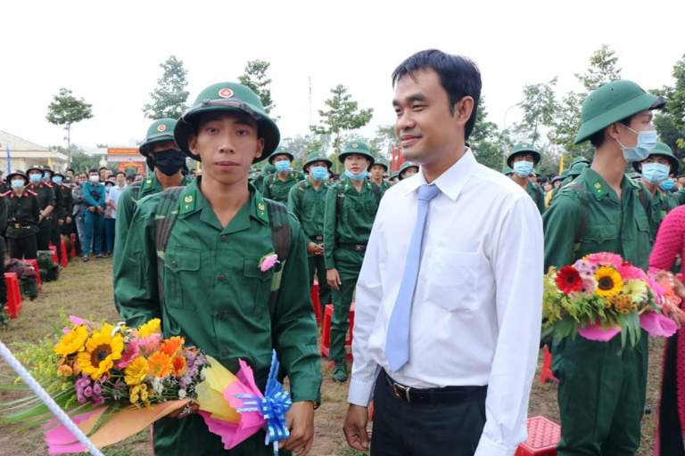Bí thư Tỉnh đoàn Đồng Tháp tặng hoa cổ vũ tinh thần cho tân binh