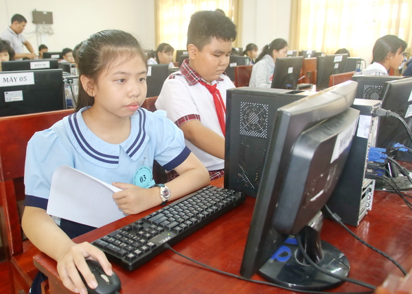 Thí sinh tham gia thi thực hành trên máy tính |