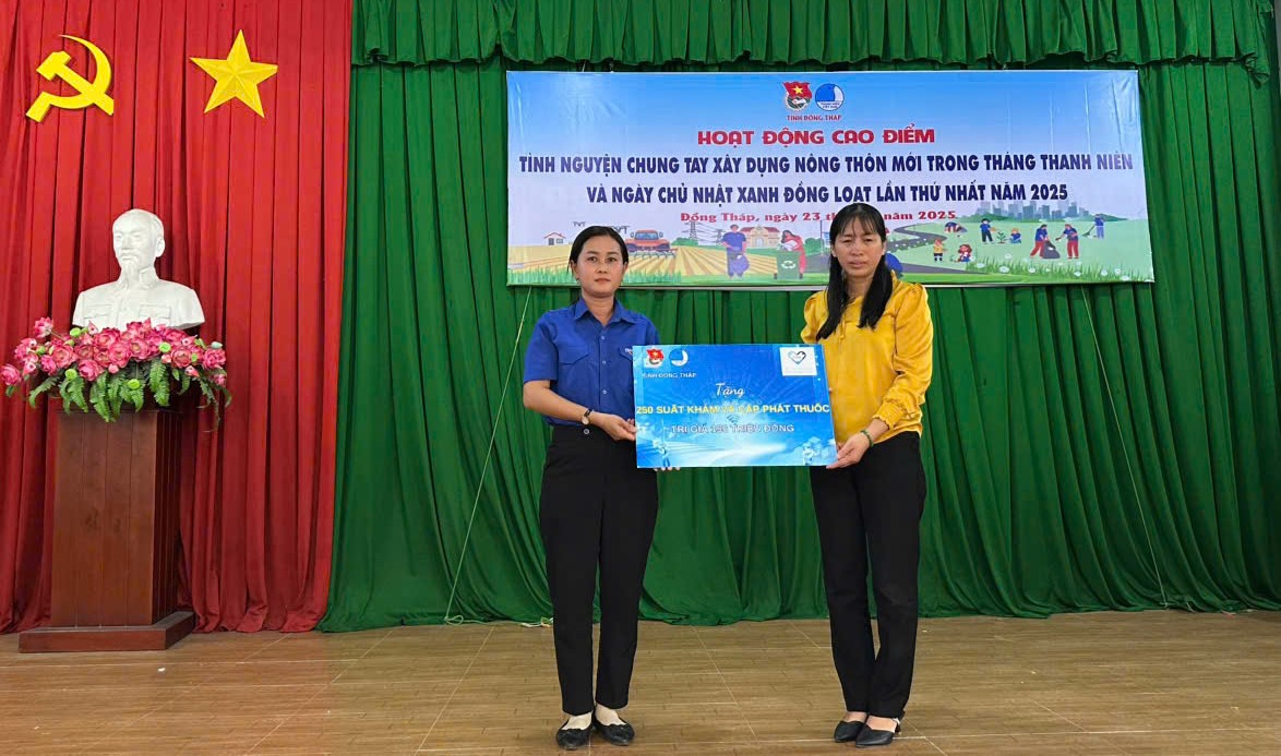 Tại điểm cấp tỉnh, Tỉnh đoàn Đồng Tháp đã trao tặng 40 thùng sữa cho trẻ em có hoàn cảnh khó khăn; tặng 30 phần quà cho thanh niên yếu thế, người dân có hoàn cảnh khó khăn; phối hợp Bệnh viên đa khoa Tâm Trí Đồng Tháp tổ chức khám, phát thuốc 250 suất cho bà con. Phối hợp với Công ty CP XNK Thập Nhất Phong tổ chức Ngày hội an toàn giao thông, hướng dẫn lái xe an toàn cho đoàn viên, thanh niên và người dân.