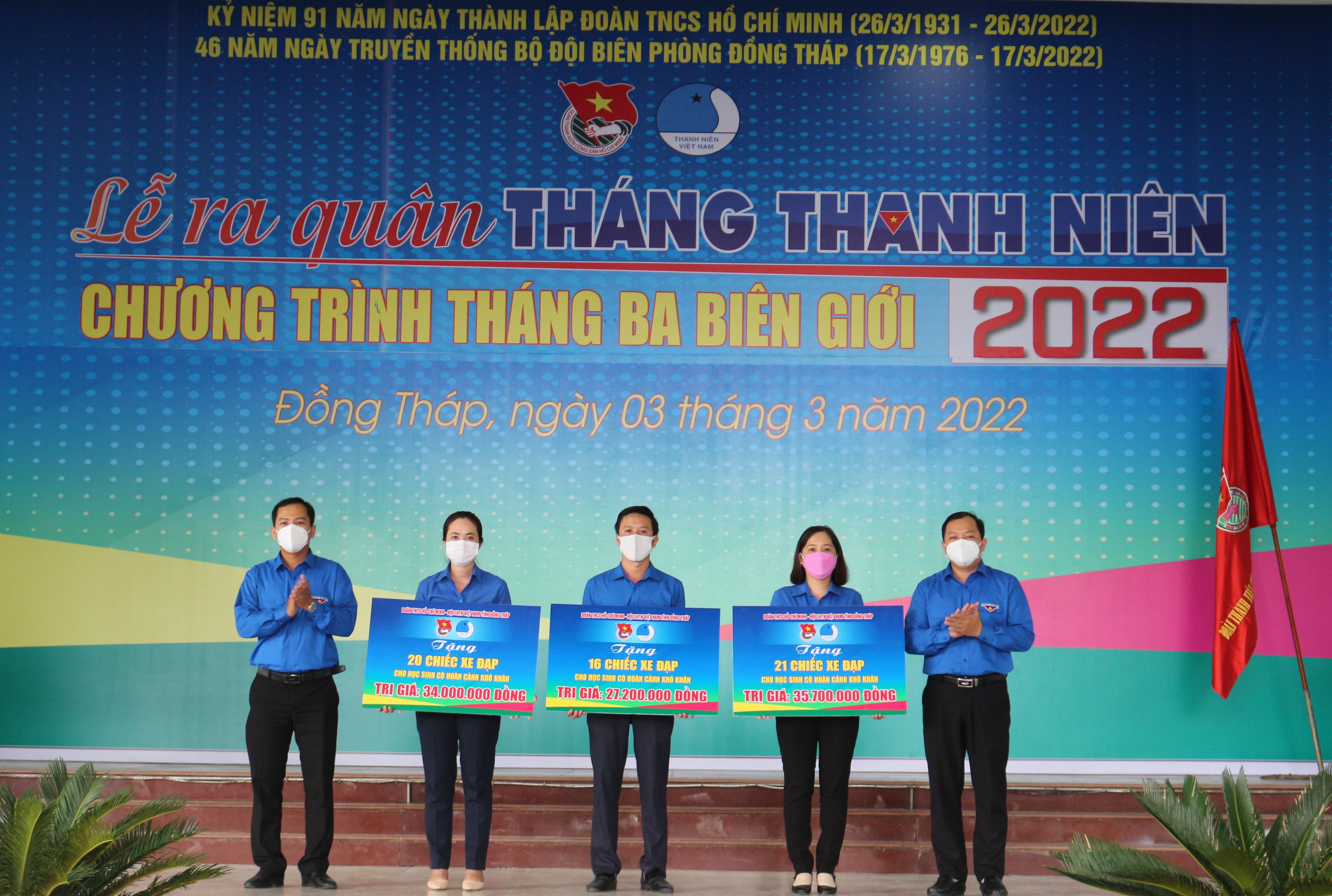 Nổi bật, tại lễ ra quân, Công ty Điện lực Đồng Tháp đã trao tặng kinh phí hỗ trợ công tác an sinh, thắp sáng đường quê bằng năng lượng mặt trời và công tác tuyên truyền đại hội đoàn trị giá trên 532triệu đồng. Ngoài ra, nhằm kịp thời đồng hành, tiếp sức đến trường cho các em học sinh có hoàn cảnh khó khăn trên địa bàn tỉnh, CLB ACE Charityđãtrao tặng 300 chiếc xe đạpcho các em thiếu nhi với tổng kinh phí 510 triệu đồng, tại buổi lễ, Ban Thường vụ Tỉnh đoàn đã thay mặt CLB ACE Charity trao 57 chiếc xe đạp cho các đơn vị biên giới.