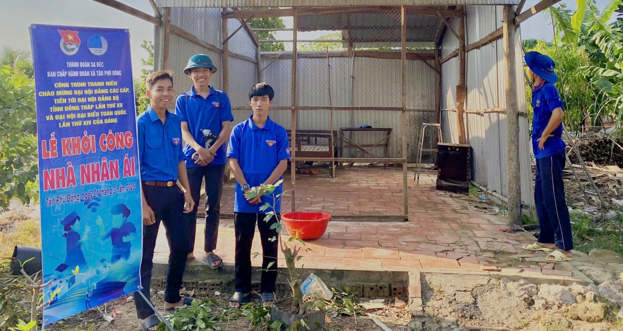 Đoàn viên, thanh niên xã Tân Phú Đông, thành phố Sa Đéc hỗ trợ người dân thuộc diện được “xóa nhà tạm” tháo dỡ nhà cũ