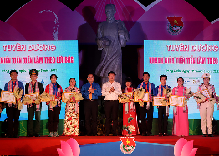 Tại buổi lễ, Ban Thường vụ Tỉnh đoàn đã tuyên dương 33 Thanh niên tiên tiến làm theo lời Bác và 10 gương mặt trẻ tiêu biểu đất sen hồng năm 2023.