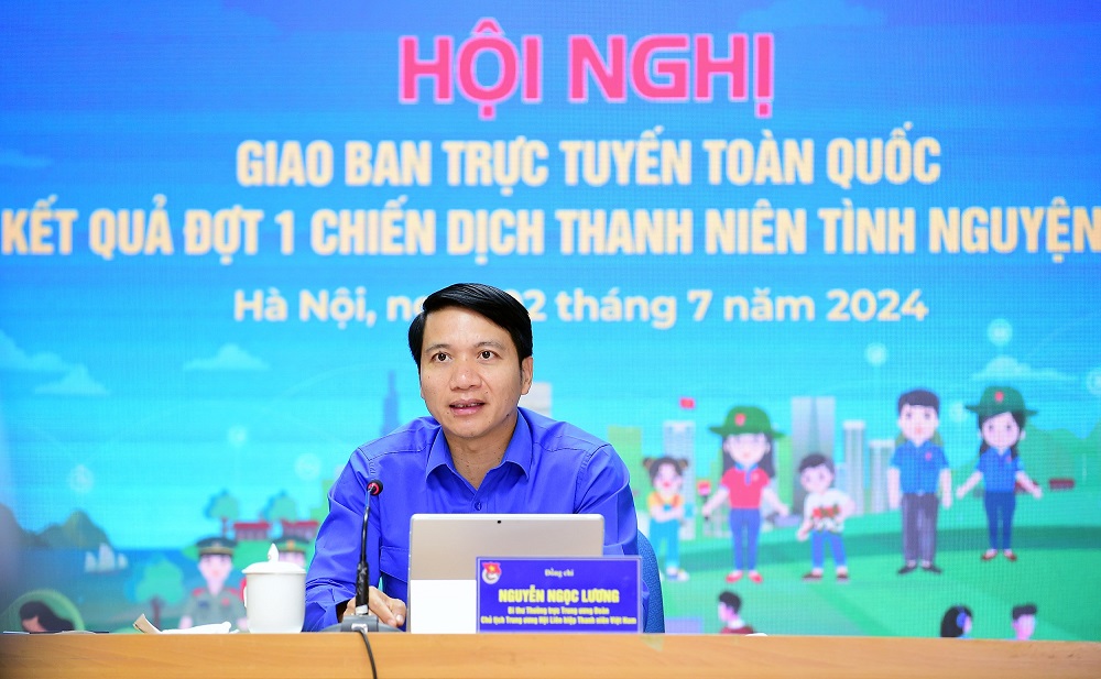 Chiều 2/7, Trung ương Đoàn tổ chức Hội nghị giao ban trực tuyến toàn quốc đánh giá kết quả đợt 1 Chiến dịch thanh niên tình nguyện Hè năm 2024. Đồng chí Nguyễn Ngọc Lương - Bí thư Thường trực T.Ư Đoàn, Chủ tịch Hội LHTN Việt Nam, Trưởng ban Chỉ đạo Chiến dịch chủ trì Hội nghị.