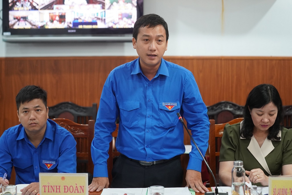 Bí thư Tỉnh đoàn Long An Trần Hải Phú phát biểu tại buổi làm việc