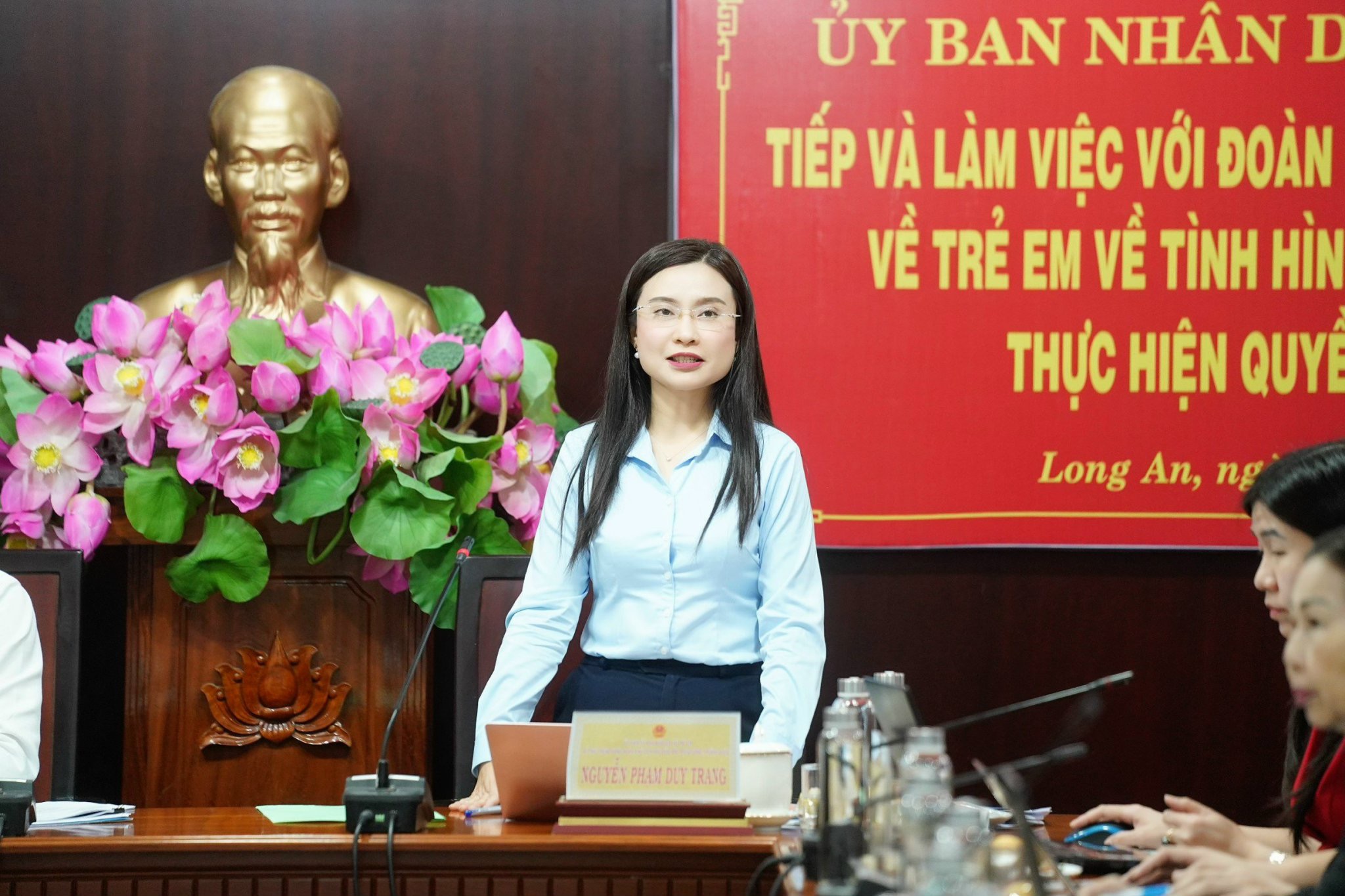 Phát biểu tại buổi làm việc, Bí thư T.Ư Đoàn, Chủ tịch Hội đồng Đội T.Ư Nguyễn Phạm Duy Trang đánh giá cao sự quan tâm, nghiêm túc, trách nhiệm của tỉnh Long An trong chỉ đạo, thực hiện Luật trẻ em 2016 và quyền trẻ em. Những kết quả đạt được cho thấy, các cấp ủy đảng, chính quyền địa phương xác định công tác trẻ em là công tác chiến lược trong việc phát triển nguồn nhân lực lâu dài của tỉnh. Trong đó, công tác tham mưu của ngành LĐ, TB và XH tỉnh rất kịp thời, có trọng tâm, trọng điểm; sự vào cuộc của các cấp, các ngành nhịp nhàng, hiệu quả, khoa học...