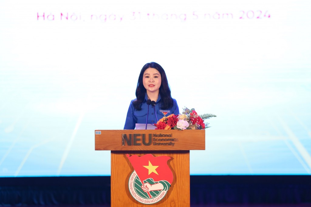 Đồng chí Chu Hồng Minh, UVBTV Trung ương Đoàn, Thành ủy viên, Bí thư Thành đoàn Hà Nội phát biểu tại chương trình