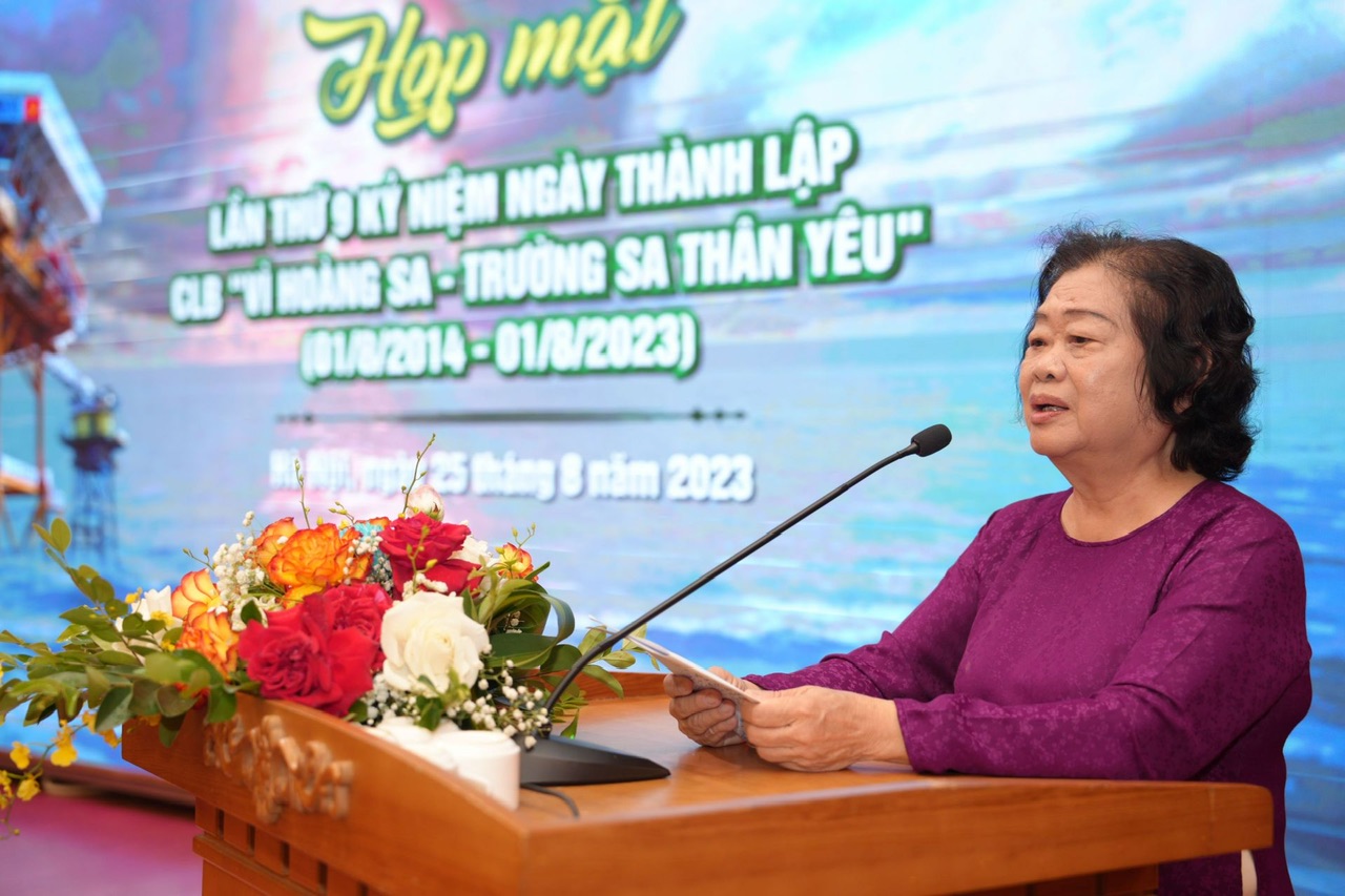 Phát biểu tại buổi lễ, đồng chí Trương Mỹ Hoa cho biết, năm qua, mặc dù tình hình kinh tế vẫn còn rất nhiều khó khăn nhưng các thành viên của CLB “ Vì Hoàng Sa – Trường Sa thân yêu” vẫn luôn nỗ lực hết sức mình để góp sức cho Trường Sa, cho những hoạt động hướng về biển đảo thân yêu. CLB đã để lại dấu ấn đặc biệt và lan tỏa tình yêu biển đảo bằng một chuỗi các chương trình hoạt động.