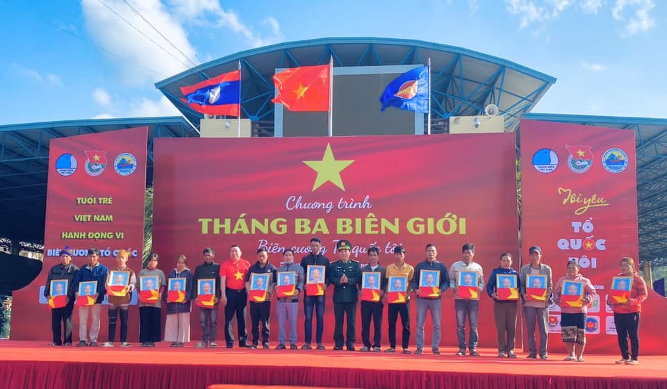 Trao tặng cờ Tổ quốc và ảnh Bác Hồ cho các hộ dân tham gia bảo vệ đường biên
