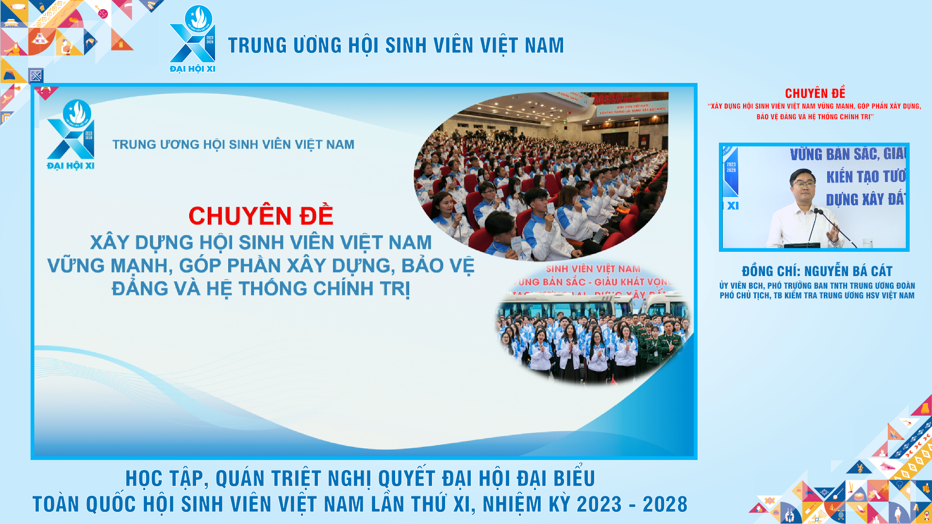 Ngay sau khai mạc, Hội nghị trực tuyến nghiên cứu, học tập, quán triệt Nghị quyết Đại hội đại biểu toàn quốc Hội Sinh viên Việt Nam, lần thứ XI, nhiệm kỳ 2023 - 2028 được tổ chức với 3 chuyên đề trọng tâm gắn với 1 phong trào và 2 chương trình của Hội đó là: Chuyên đề “Phong trào “Sinh viên 5 tốt” nhiệm kỳ 2023 - 2028”; Chuyên đề “Xây dựng Hội Sinh viên Việt Nam vững mạnh, góp phần xây dựng, bảo vệ Đảng và hệ thống chính trị”; Chuyên đề “Đồng hành, tư vấn hỗ trợ sinh viên Việt Nam”.