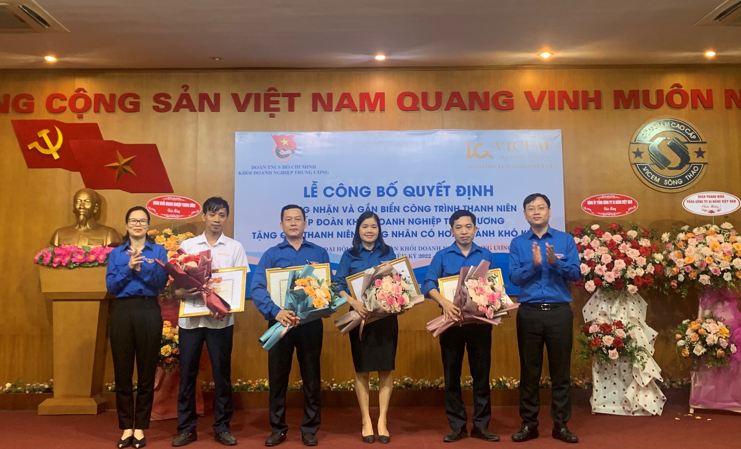 Tại buổi lễ, Đoàn Khối DNTW đã trao Quyết định công nhận Công trình Thanh niên cấp Đoàn Khối, tặng Bằng khen cho tập thể Đoàn Công ty Cổ phần Xi măng Vicem Sông thao và 03 đồng chí đoàn viên thuộc Đoàn Thanh niên Công ty đã có thành tích xuất sắc trong phong trào thi đua đảm nhận công trình thanh niên năm 2022.